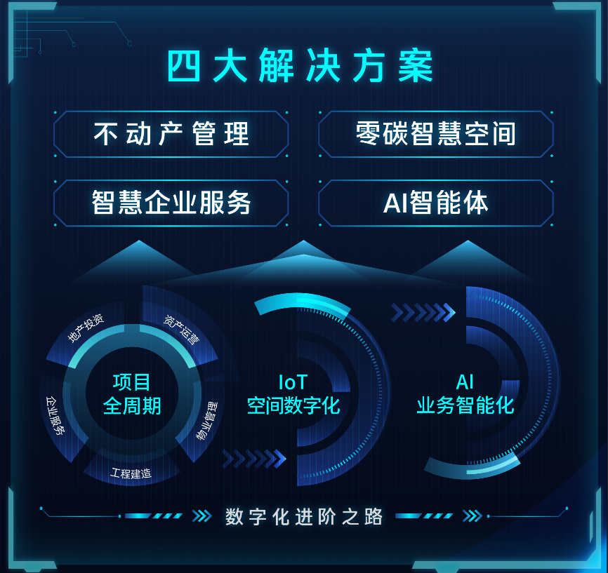 目前,千丁数科推出了四大解决方案,每个方案均对应一个不动产数智化转型的难题:不动产经营管理解决方案涉及项目的开发、建造、资管、物管、供应链等不同领域,实现项目全生命周期的数智化管理;零碳智慧空间解决方案实现楼宇智控、智慧园区、智慧安防、能源管理、零碳等全套智慧空间“all in one”;以及赋能整体企业效率,包含人力资源、业财一体等平台模块的智慧企业服务解决方案,和围绕真实业务场景,可持续创造价值的AI智能体解决方案。